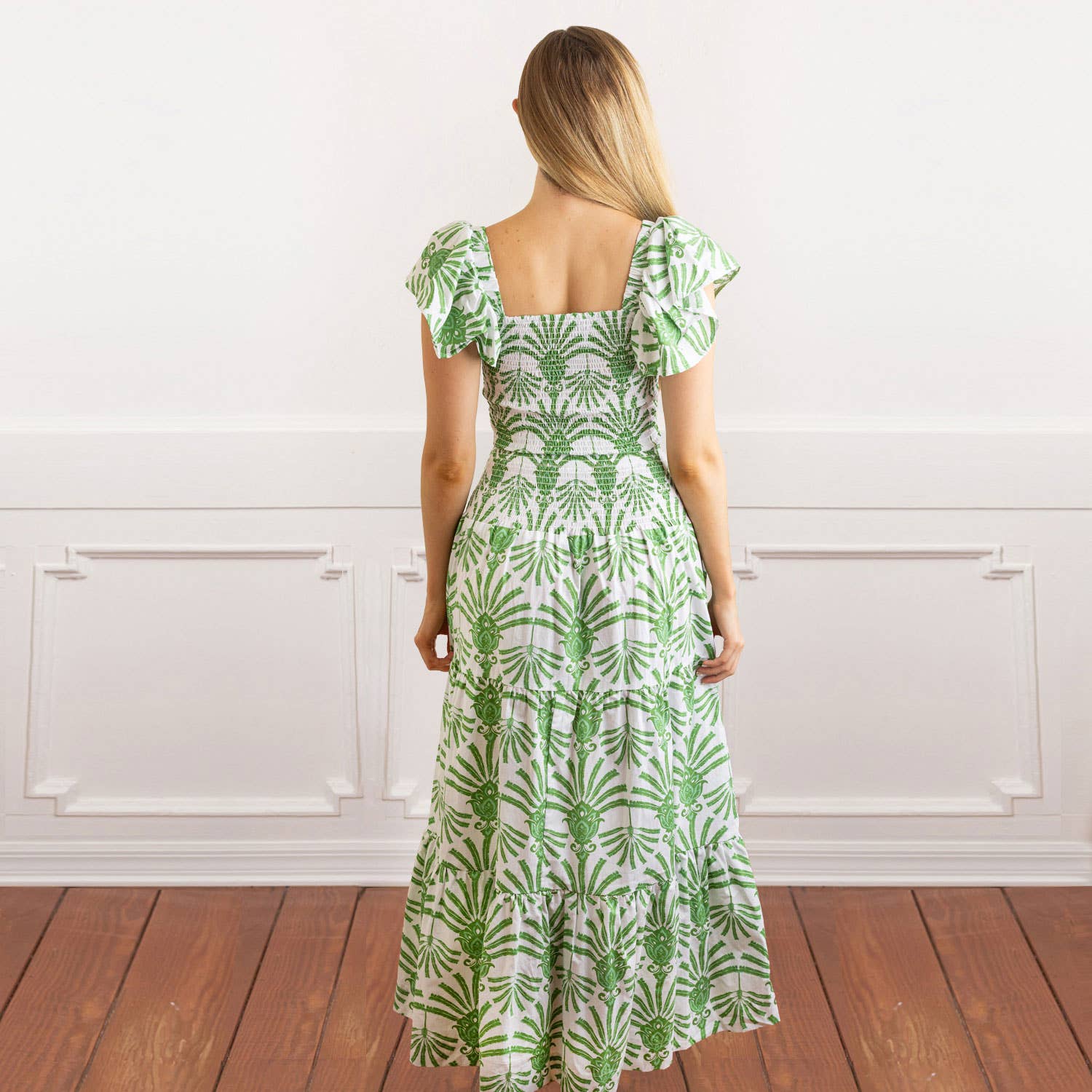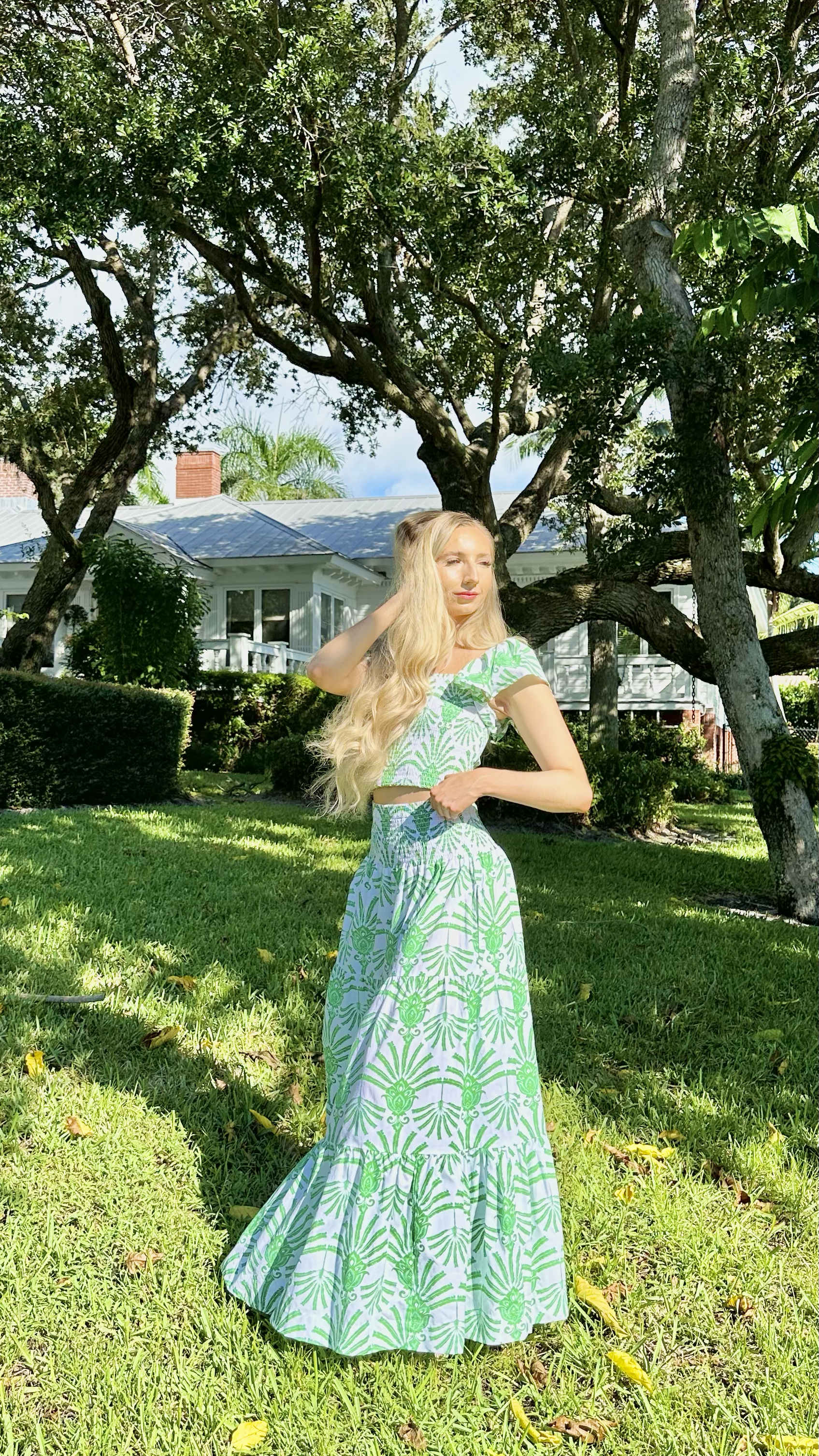 Introducing the Green Deco Smocked Flutter Sleeve Top & Skirt Set – a timeless & elegant apparel set perfect for any lifestyle! Whether it’s brunching, dining, shopping, or carpooling, this beautiful, printed cotton set is an essential wardrobe staple. The flutter sleeves give it a touch of romance while the smocking on both the top & skirt make it ultra-flattering. Wear as a set or separately, the possibilities are endless! Look no further for a fashion staple that will last you season after season!