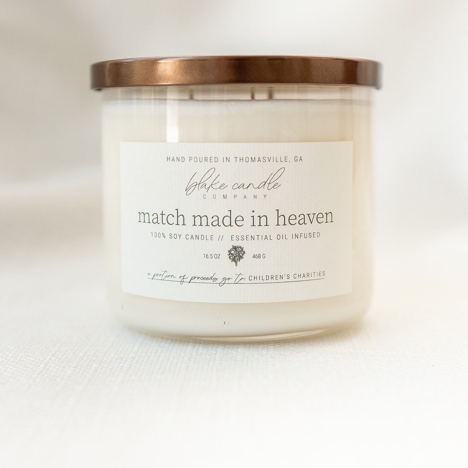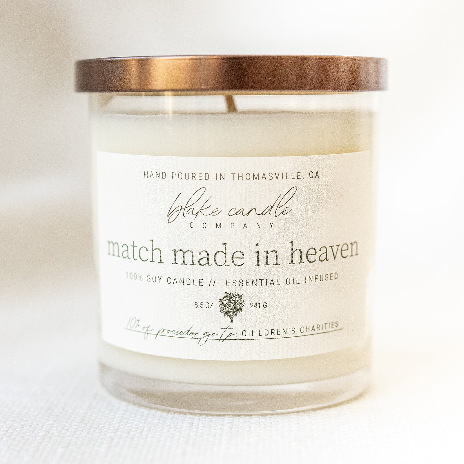 Feel the love with this alluring candle. Match Made in Heaven is close to our hearts. We collaborated this unique candle with a few local (to Thomasville, Ga.) wedding photographers. Our dear friends in the wedding industry are gifting their brides with the perfect romantic gift.
